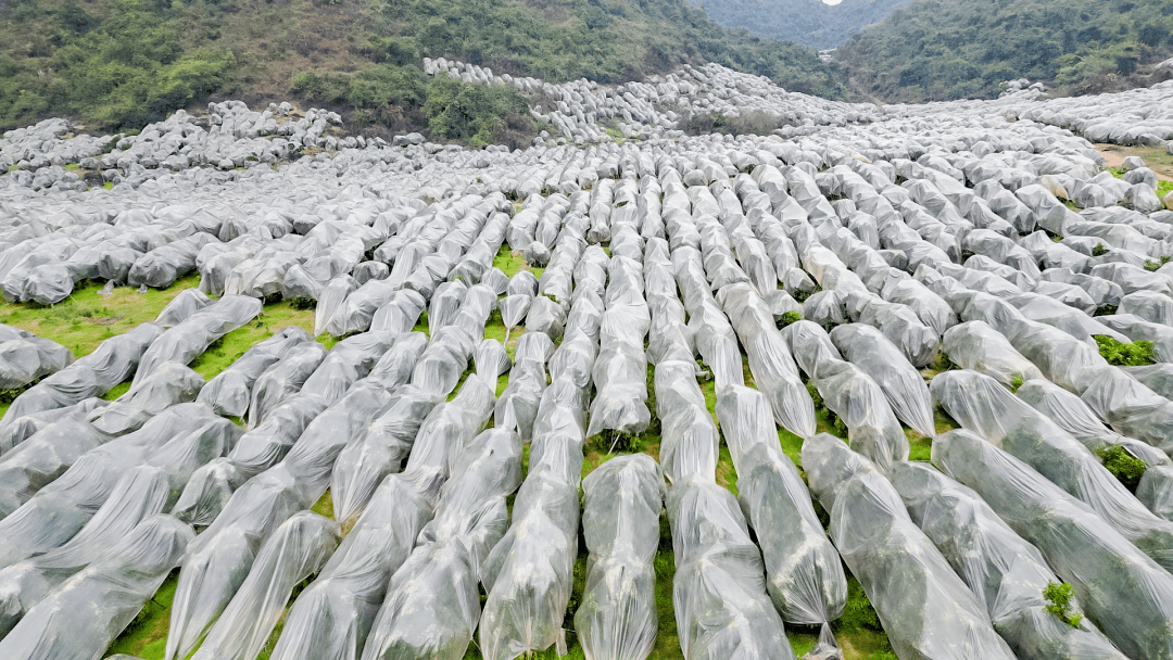 咱们的荔浦砂糖桔盖膜第一个就是,避开霜雪天气对果实造成实质性的损害。再一个就是,咱们盖膜以后能够把我们的货架期拉长,3月到4月,在价格最好的时候出售。