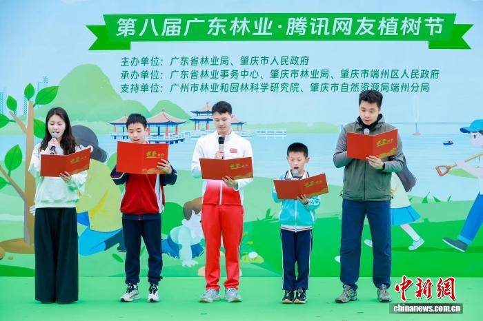 此次活动邀请陈艾森担任植树节绿化大使,花样游泳奥运冠军王柳懿、王芊懿则通过线上的方式为活动助力。现场,陈艾森和网友代表宣读“我为绿美广东种棵树”倡议书,呼吁社会各界赓续“忠诚奉献、艰苦创业、团结奋斗、久久为功”的“岳山造林”光荣传统,主动履行植树义务,携手绘就绿美广东生态新画卷。
